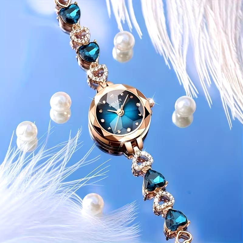 2pcs Elegant Rose Golden & Pink Faux Leather Strap Quartz Watch Set | Sparkling Rhinestone Accents, Round Dial with Heart Design, Perfect for 'S Day, Birthdays, And Parties, Fashion Gift | Elegant Accessory, Non, Stainless Steel