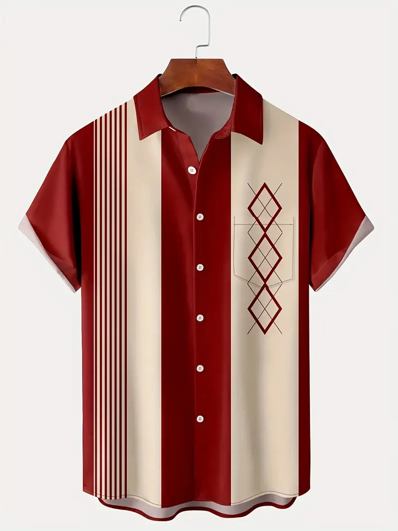 3pcs Set + Beaded Fabric Men's Short Sleeve Lapel Top with Contrast Stripe Design, Ideal for Workwear and Casual Daily Wear as a Gift
