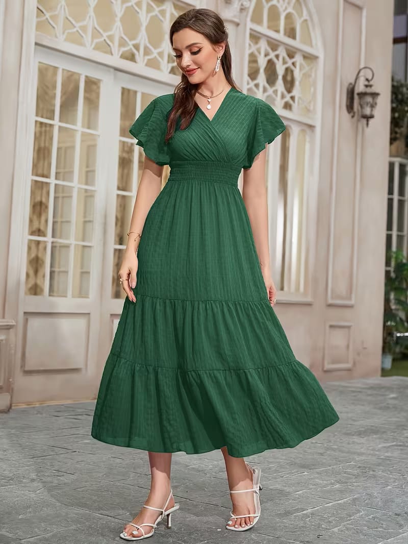 Elegant Dress – Long Sleeve A-Line Mermaid -Length Formal Party Wedding Guest Dress with High Neck & Slim Fit, Hand Washable Winter Gown All-Season Wear