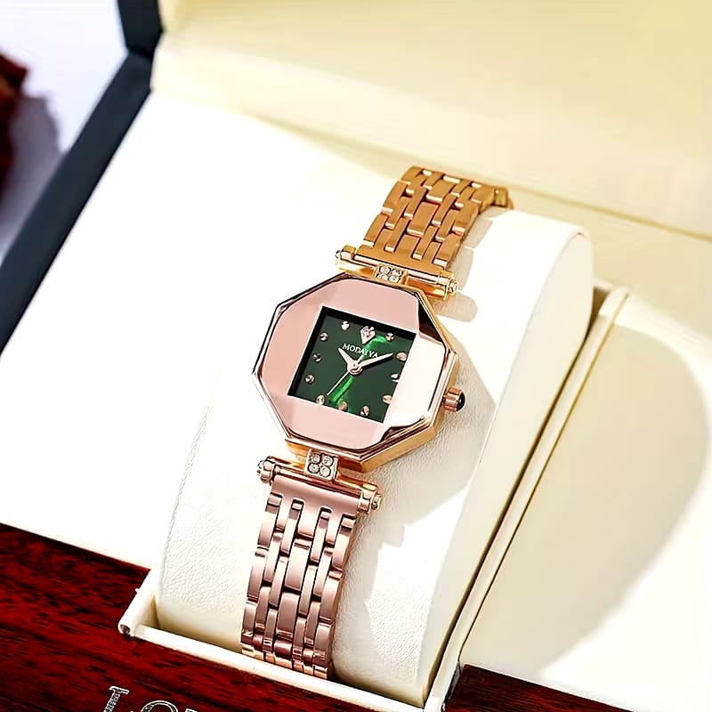 JSDUN Classic Women's Automatic Mechanical Watch with Dual Calendar Day/Month & Moon Phase Indicator, Stainless Steel/ Case &, Elegant Analog Wristwatch for Daily Use, Dress Watch for or Special Occasions