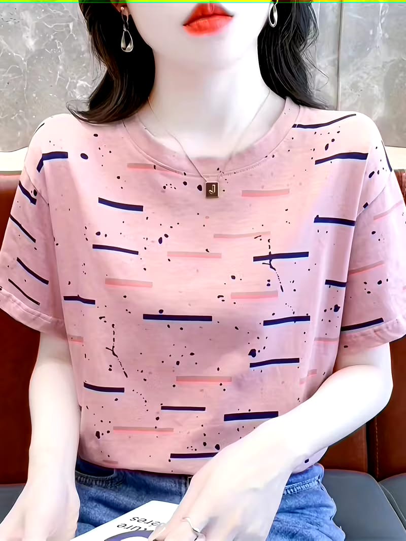 Summer Mid-Aged Women's 2025 New Ice Sliky Fiber Fabric Short-Sleeve Breathable Casual Commuter Mom T-Shirt Top